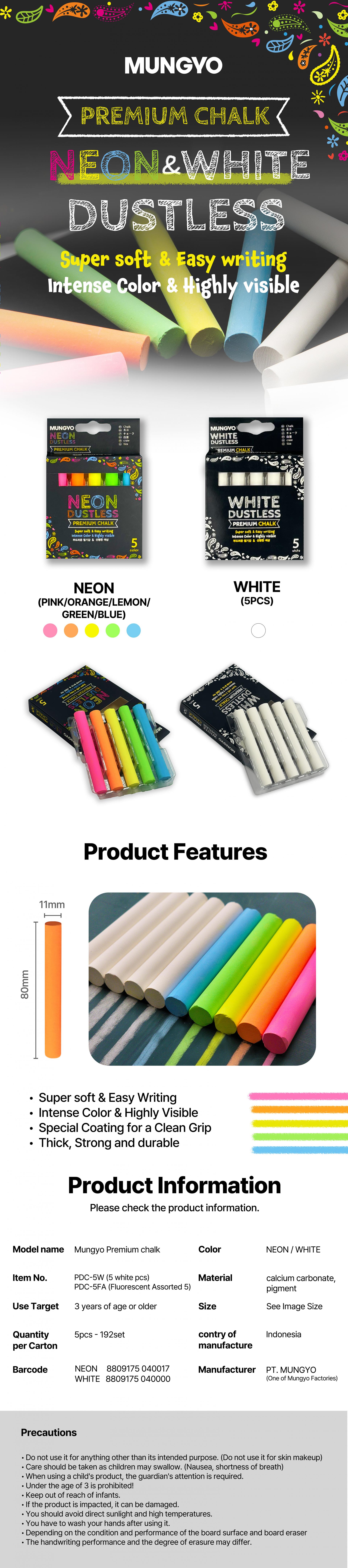 Mungyo Premium Chalk (Neon/White)